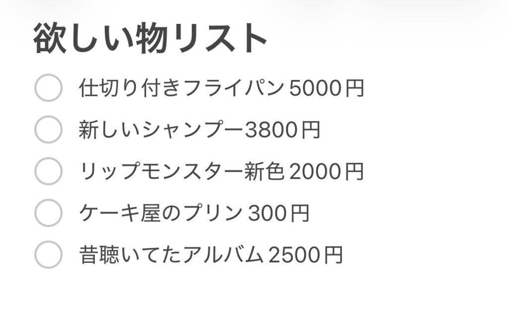 欲しいものリストの例