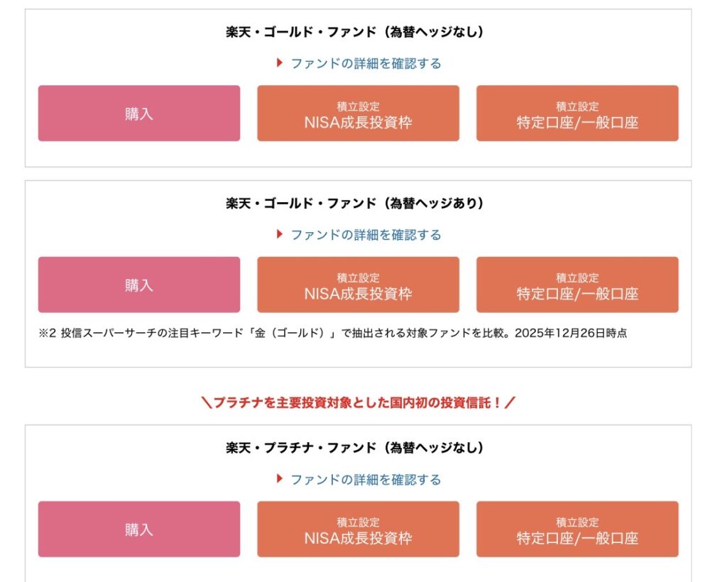 楽天証券から新しく登場の「楽天・ゴールド/プラチナ投資信託」。