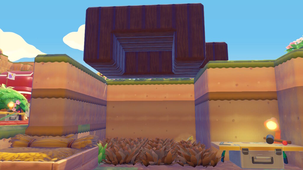 草むらの横に「あついいわ」を置くことで、乾いた状態の地面や枯れ木を作ることができます。