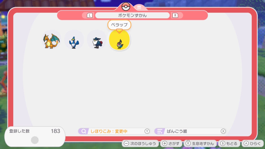ポケモン図鑑の「さがす」機能を使うのがおすすめです。